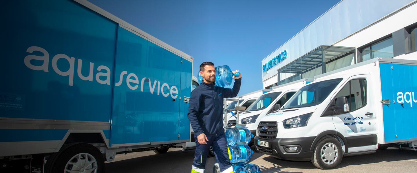 Repartos programados cada 28 días. Gestiona tu servicio desde la App de Aquaservice.