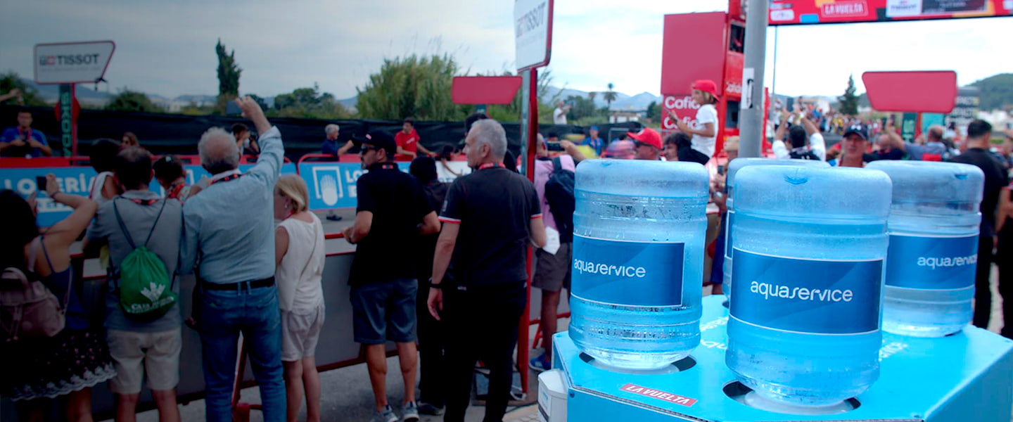 Desde el inicio de su colaboración, se estima que Aquaservice ha suministrado a La Vuelta más de 300.000 litros de agua, que suponen más de 12.000kg de plástico de un solo uso evitados.